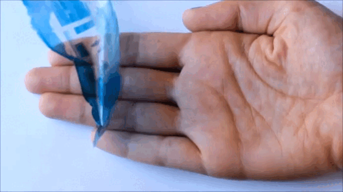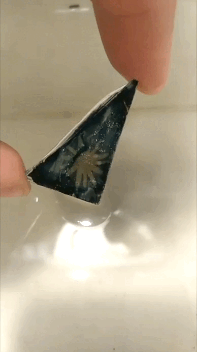 Cyanotype on agar-agar, removed from the glass and being Bioplastic, when it's very thin, reacts to the heat of